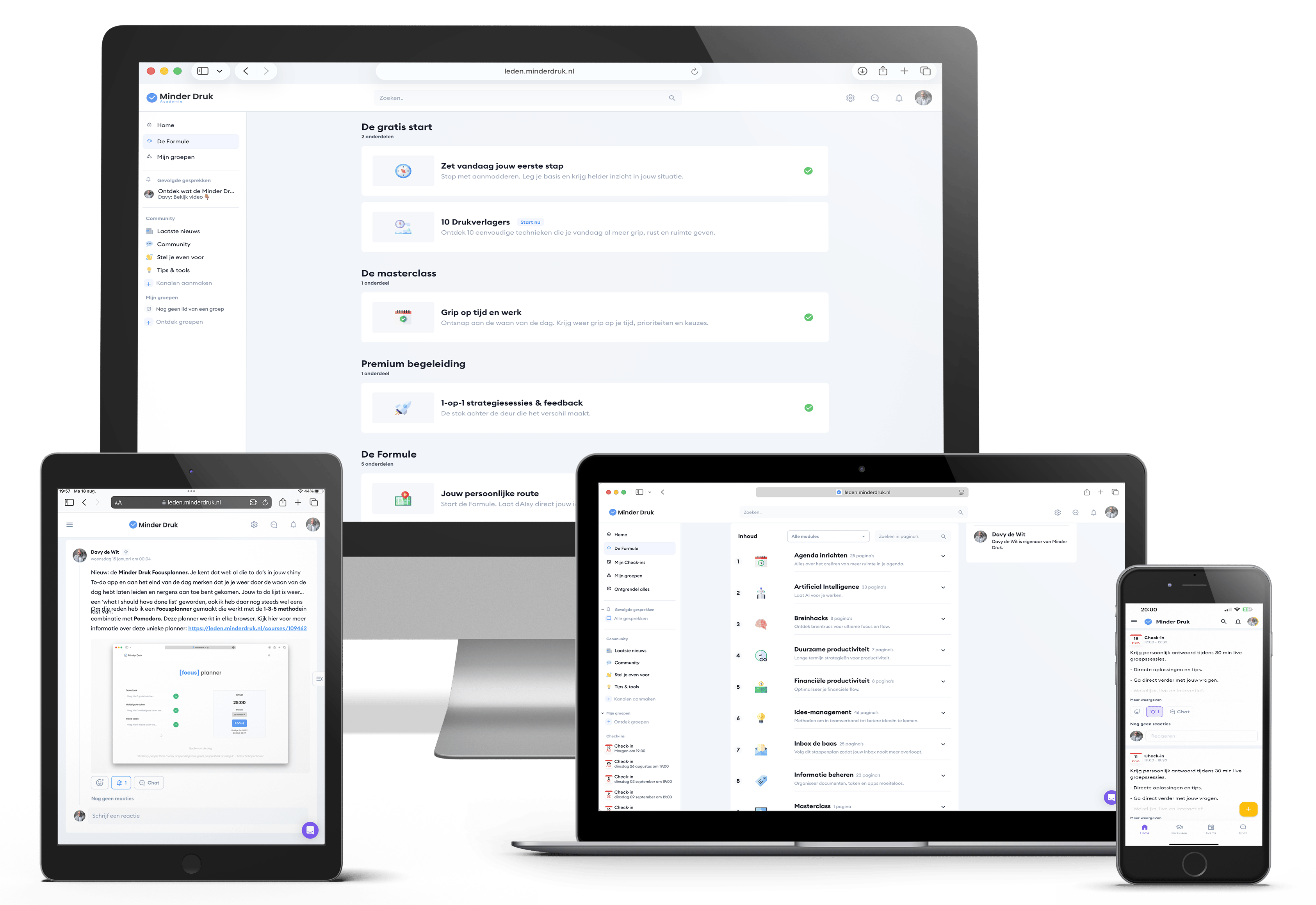 Na jaren van zoeken, experimenteren en vereenvoudigen ontwikkelde ik de Minder Druk Formule. Geen theoretisch boekwerk, maar een compleet ecosysteem dat rust, overzicht en regie terugbrengt in werk en daarbuiten.